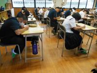 蜜を避け、全員、黒板を向いて黙々とお弁当を食べています。