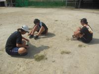 さて、校内では、メキメキ実力を付けているソフトボール部員が、黙々とグラウンドの草引きをしていました。