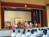 体験授業後には、本校の郷土芸能部、吹奏楽部による演奏が行われました。