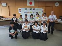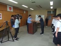 完成したミニうちわは、両面に美術部員の描いたデザイン画が印刷されており、それら1枚ずつを、生活安全課長の警部 井上様から部員全員に手渡していただきました。