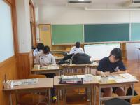 昨日、熱戦を繰り広げた野球部員も、野球応援で頑張った団長をはじめとする応援参加者も、演奏会を終えた郷土芸能部員も、大会で高知に行っていたライフル射撃部員も、新チームで初の大会に出場したバレーボール部員も、みんなみんな、真剣な表情で補習授業に取り組んでいました。