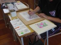 扇子に加工したらどのように絵柄が変化するのか、出来上がりをイメージしながら描くことが大変だったようです。