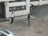 どうやら今月参加する予定の某教職員ソフトボール大会に向けて、本校のソフトボール部員を相手に練習していたようです。楽しい雰囲気の中にも、互いに負けたくない気持ちが伝わってきました。