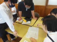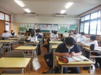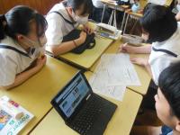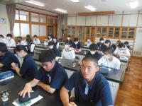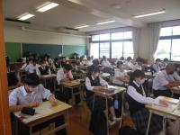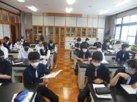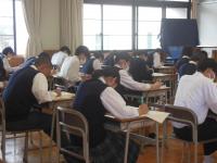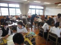 こちらは2年生の英語の授業です。どうやらグループで英文を考えているようです。一人だと敬遠しがちなことも、グループで楽しく案を出し合って解答していくこの授業ではみんなが主役になれる、生き生きとしているように感じます。私が担任をしているクラスでもあるので、こうして活動することで、相互理解・自己理解が深まることを期待します。