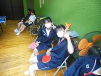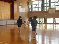 この写真は、1年生の体育の様子です。かわいらしくピースしてくれました。体育館でもにぎやかな声が聞こえています。