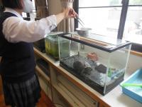 おい、遊んでるじゃないか、と思われるかもしれませんが、本人は必死です。「今まで虫を触ったこともない、ミミズを取りに行くなんて人生初です」と話してくれたこの生徒。今、まさに人生初をやっているわけです。避けていけば関わらなくてもいいことは世の中にたくさんあります。でも、関わらないと分からないこと、関わるからこそ起こる感情はきっとある。それこそが人生の宝物じゃないかといつも思います。経験は宝。そこからいろいろなものが生じてくる。まさに「生物」という授業だからこそ、堅苦しい難しい話だけではなく、こうした体験もぜひやらせたいと思っています。ちなみに、先日は、大洲東中学校近くの小川にオオカナダモを取りに行きました。自然と触れ合うことこそ、理科の根源じゃないかなって、いつも思っています。