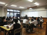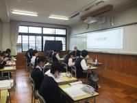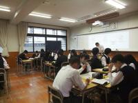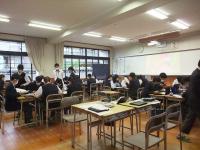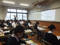 まず、各学年の楽しそうな授業を参観していただきました。写真は授業風景の一コマです。保護者の皆様がいらっしゃったことで、いつも以上にはりきっている生徒の様子がうかがえます。