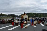 本校の郷土芸能部も、例年大凧合戦に合わせて橋の上で演奏を披露していましたが、過去3年間はコロナのために行われていませんでした。今年は4年ぶりに参加することができ、現在の部員たちにとっては初参加での演奏で、非常に貴重な経験になったと思います。和太鼓演奏は小雨でも中止を余儀なくされるため、雨が降りそうで降らなかったのは本当に奇跡的でした。