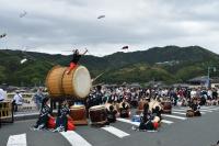 大勢の観客の中、勇ましく舞い上がった数々の凧を背に、和太鼓集団「和達」と本校郷土芸能部がコラボしての演奏は、「いかざき大凧合戦」の再開を祝しているかのようでした。