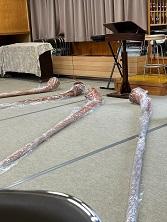 当日はあいにくの雨でしたので、農業に使用する大きなビニールで楽器をぐるぐる巻きにすることから一日が始まりました。