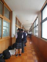 気持ちのよい風に吹かれながら、廊下でテスト前の勉強をしている3年生。成果を見せてくださいね。