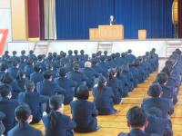 午後のホームルーム活動の時間に、3年生は学年集会を開きました。