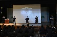 生徒会長の挨拶の後、感謝の意を込めて生徒から花束贈呈が行われました。