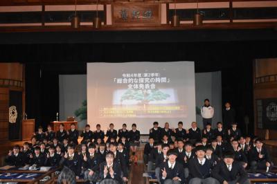 本日(3月15日)の総合的な探究の時間、2年生は内子座をお借りして全体発表会を行いました。