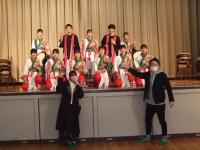 例年ならば年が明けた今の時期は、郷土芸能部的にはシーズンオフなのですが、いろいろなところからお声がかかり、貴重な演奏の機会をいただいています。つい先日(1月23日)も大洲・喜多経済研究会様から研究会オープニング演奏の依頼を受け、大洲にある旅館のパーティー会場のようなところで演奏を披露させていただきました。部としては初の試みでしたが、大洲の企業の方々の前で堂々と演奏し、大きな喝采を受けました。帰り際に主催者の方々からお褒めの言葉を賜り、部員たちも嬉しそうでした。1月29日にも介護施設からの依頼で演奏する予定です。