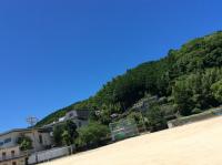 内子高校のグラウンドの上空も、雲一つない真っ青な空となっていました。