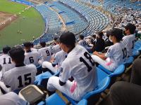 本校野球部員も朝から坊っちゃんスタジアムへ向かい、三階席で待機しました。