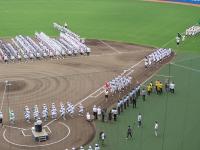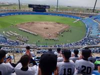 3階席からの撮影でしたので写真が小さいですが、部員たちはとても堂々と立派に行進していました。暑い中、選手たちはよく頑張ったと思います。