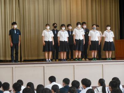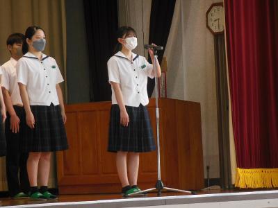 校長先生と生徒会長からの激励の言葉を受け、出場選手を代表してライフル射撃部主将の金元さんからは大会に向けた抱負と感謝の気持ちが述べられました。