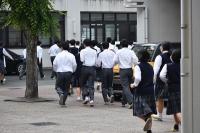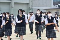 行進に参加できる生徒は限られており、他の生徒は観客席から開会式に参加します。