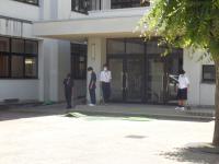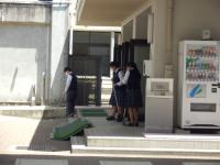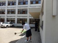 清掃時間、屋外担当の生徒たちも今日も元気に掃除をしています。写真はたまたま日陰にいるような、いないような……。梅雨入りすると、外掃除のできない日が増えそうです。