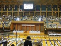 会場は愛媛県武道館です。大きな主道場に、密を避けながら、たくさんの関係者が集まりました。