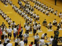 そして、フロアーには県下の高校・中等教育学校の生徒が整列しました。今年度は、本校からライフル射撃競技女子総合の優勝杯返還がありました。ライフル射撃部念願の総合優勝でしたので、少し寂しくなりますが、ぜひまた総合優勝してカップを手にしてほしいと思います。