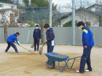 いいプレーはいいコートから!寒い中、部員で協力し合って丁寧にコート整備をしていました。