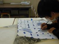 今季は、来年の「いかざき大凧合戦」に向けて依頼のあった凧描きと、独特な技術を要する凧文字に取り組んでいます。仕上がり具合もみんなで入念に確認し合い、技術を磨いていました。