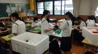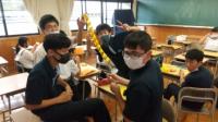 今回は、笹飾りの製作が始まったという報告です。毎年、1年生は「総合的な探究の時間」において、地域理解を目的に、地元のお祭りである「内子笹まつり」を彩る「笹飾り」を作っています。写真は、その2時間目の光景です。