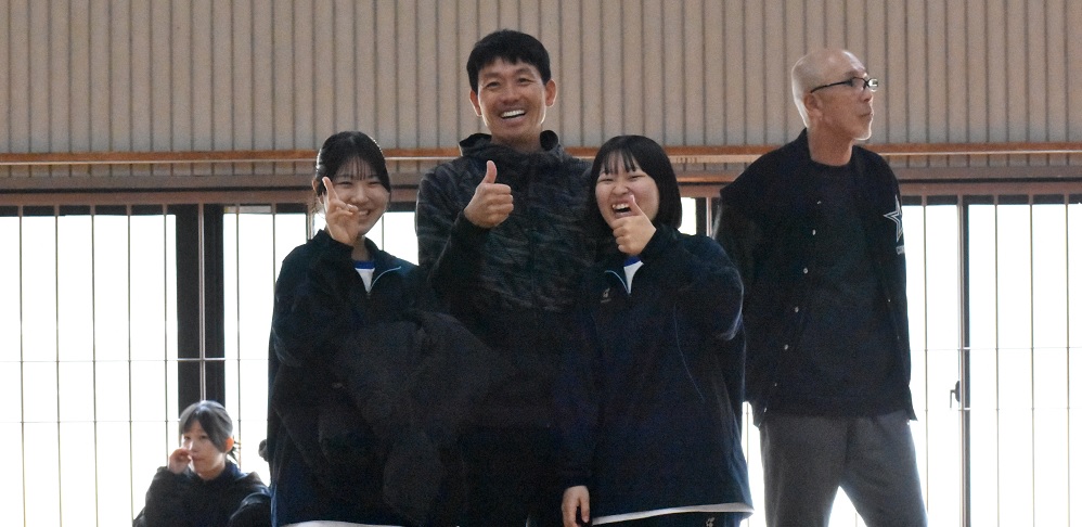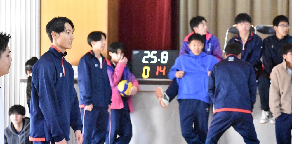 考査終了後、体育館前の階段では業務員の北川先生と大きな助手1名が作業をしていました。